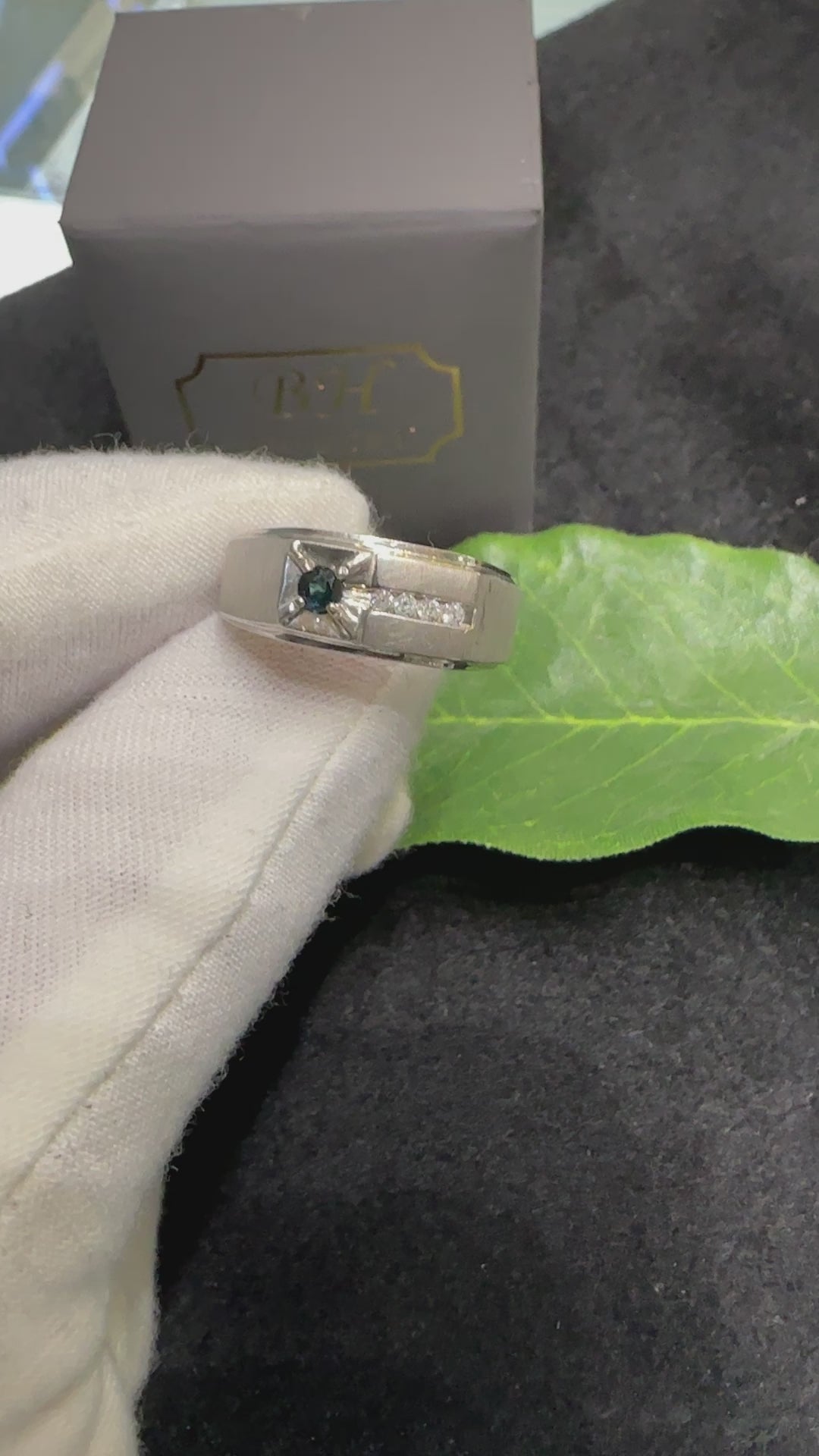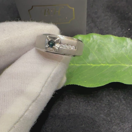 Introducing a stunning white gold men's ring crafted with exquisite attention to detail. Made with 10k white gold, adorned with 0.2 carats of brilliant natural diamonds, and accentuated by a captivating 0.12 carat natural sapphire. This piece embodies elegance and sophistication, perfect for making a statement on any occasion.