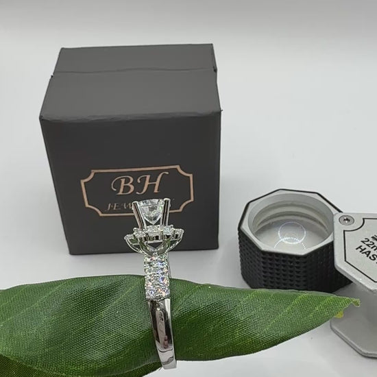 Size 7 , Rhodium silver engagement ring, CZ stone