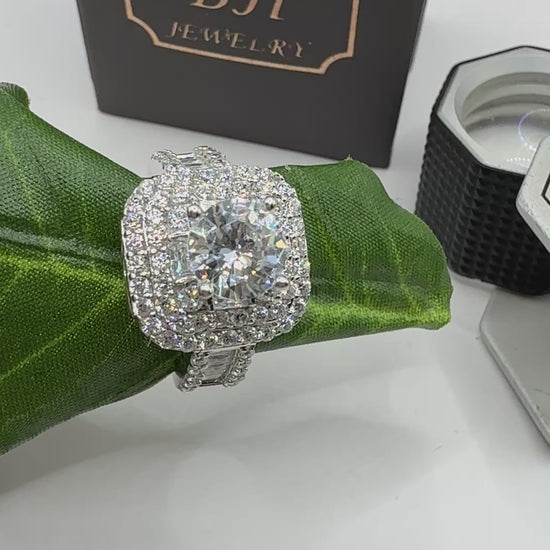 Rhodium silver engagement ring